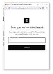 2. Si vous n’êtes pas encore authentifié , cliquez sur le bouton « Accéder au Nex York Times » ci-dessous. Puis sur « Continue with work or school single sign-on ». Vous accédez à la fenêtre de connexion :